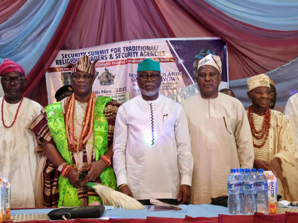 Federal Lawmaker, representing Ile Oluji/Okeigbo/Odigbo Federal Constituency, Ondo State, Hon. Mayowa Akinfolarin, on Monday held a security summit for Traditional/Religious Leaders and Security Agencies in the Federal Constituency.