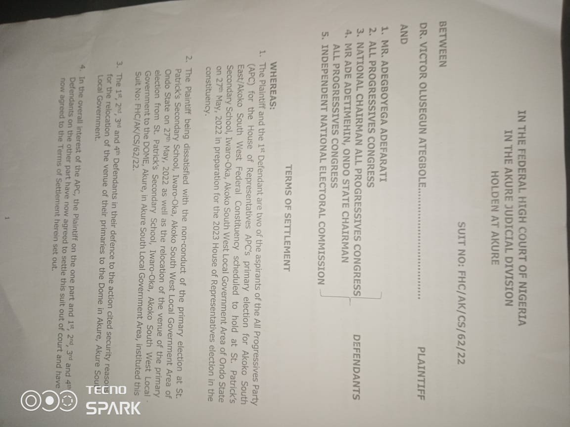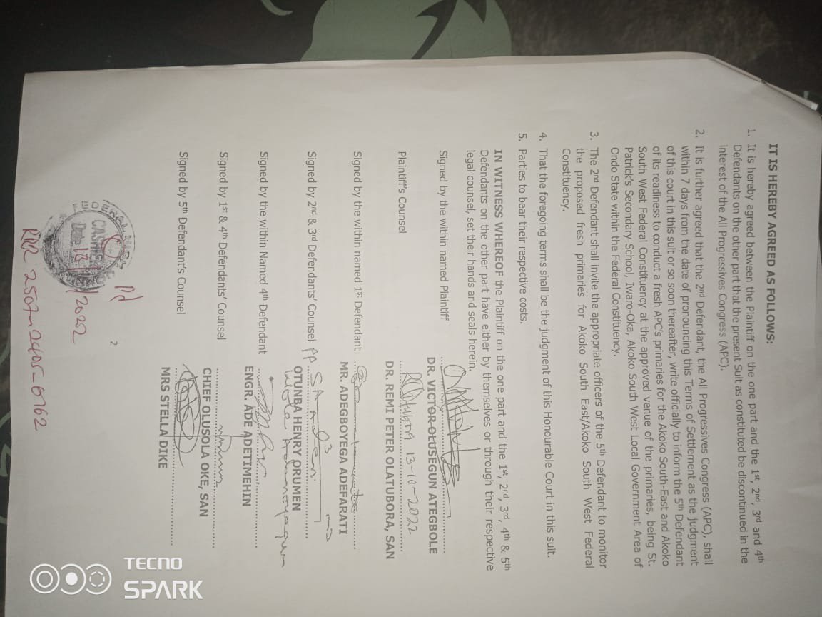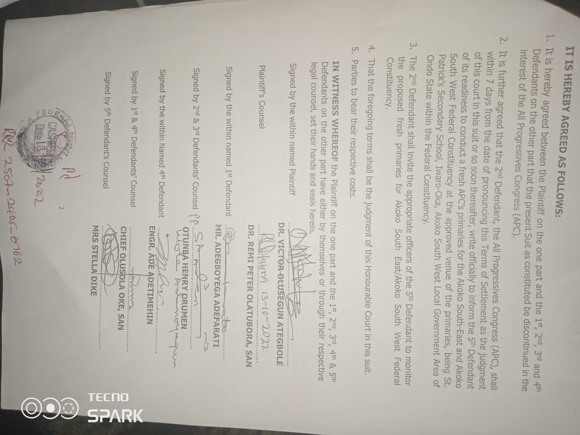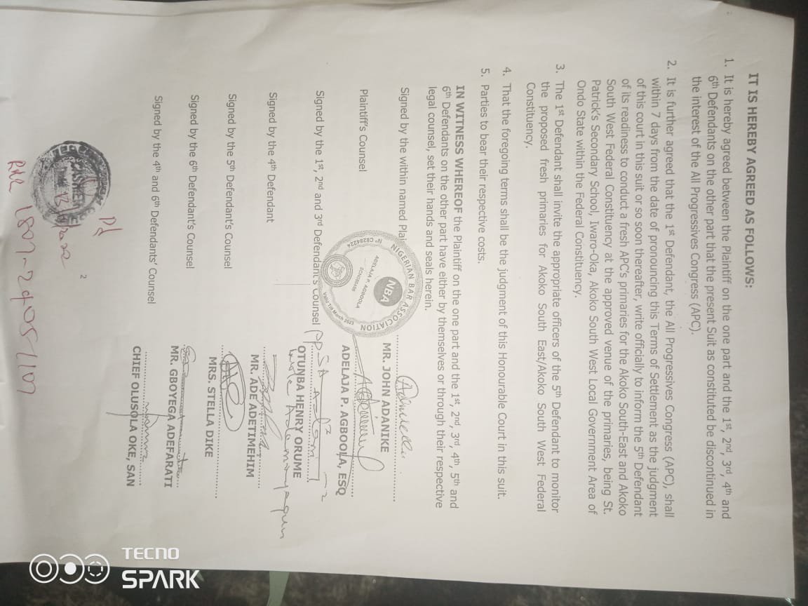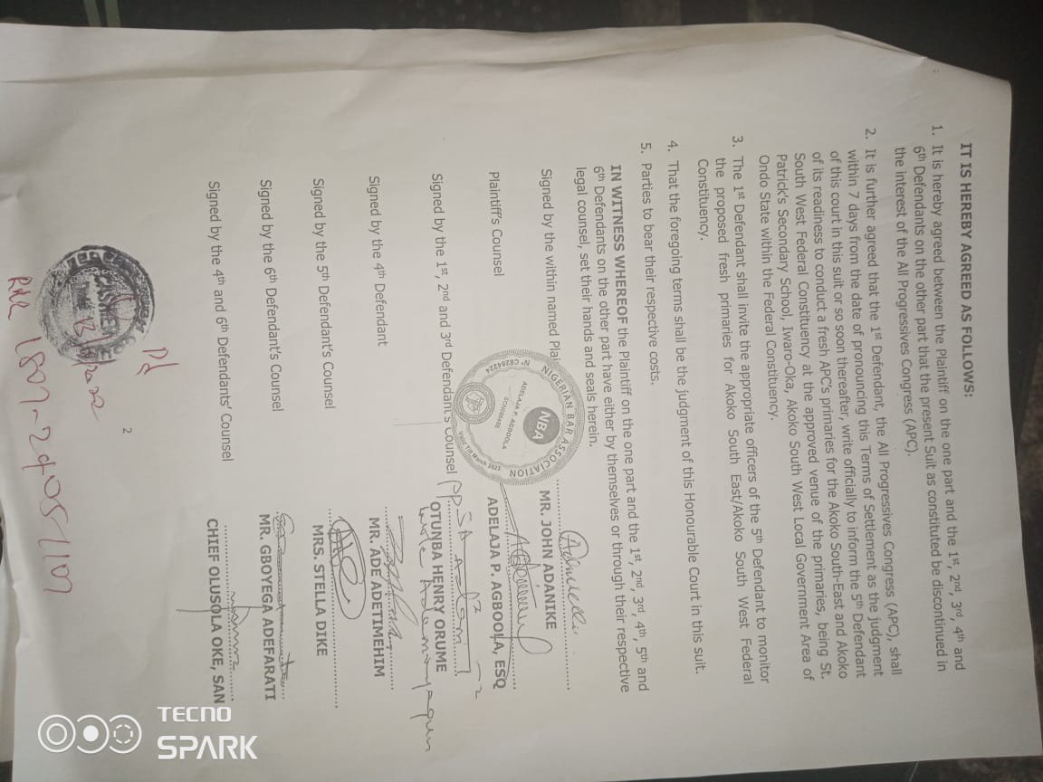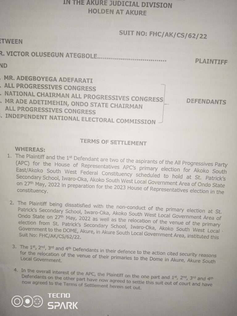 Some aspirants on the platform of the APC had approached the federal high court in Akure to challenge the declaration of Gboyega Adefarati as winner of the primary election.