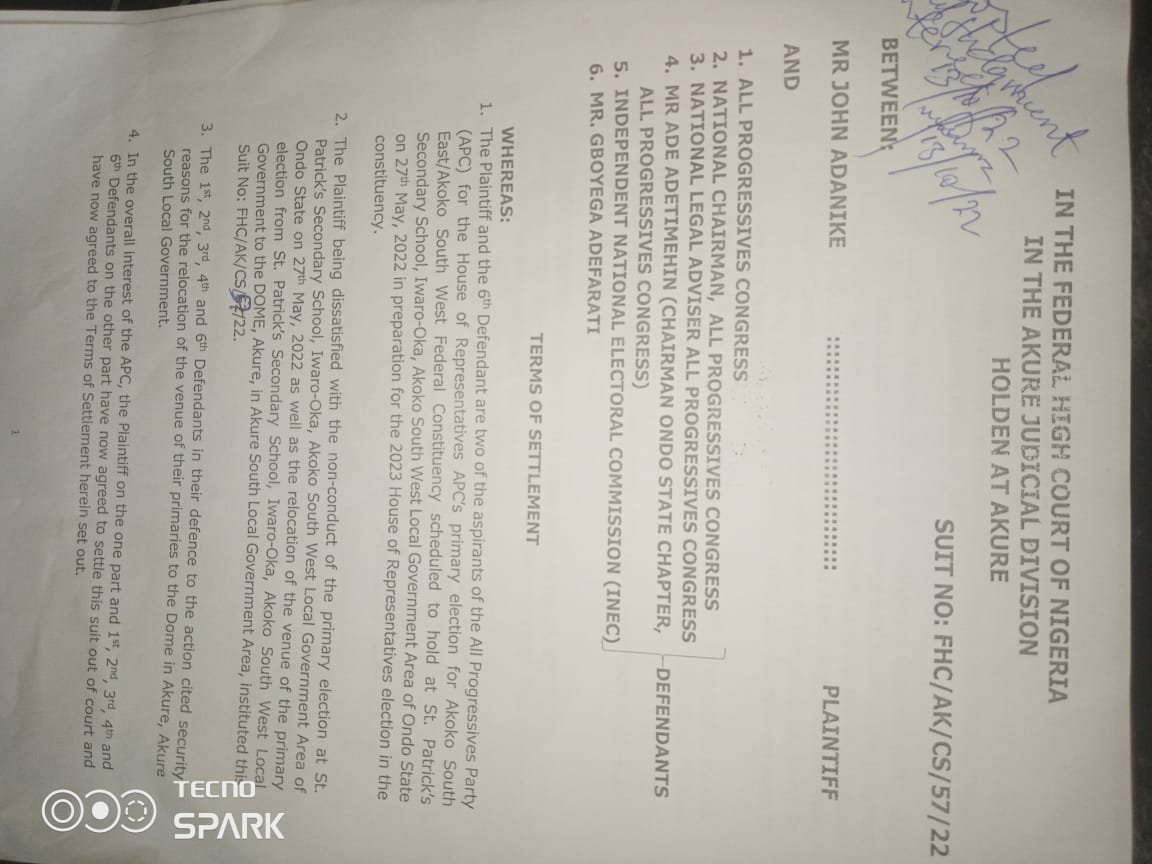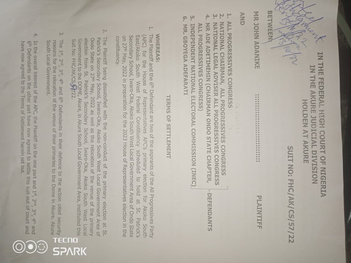 The primary election venue was moved from Akoko to Akure, which the aspirants challenged in court.