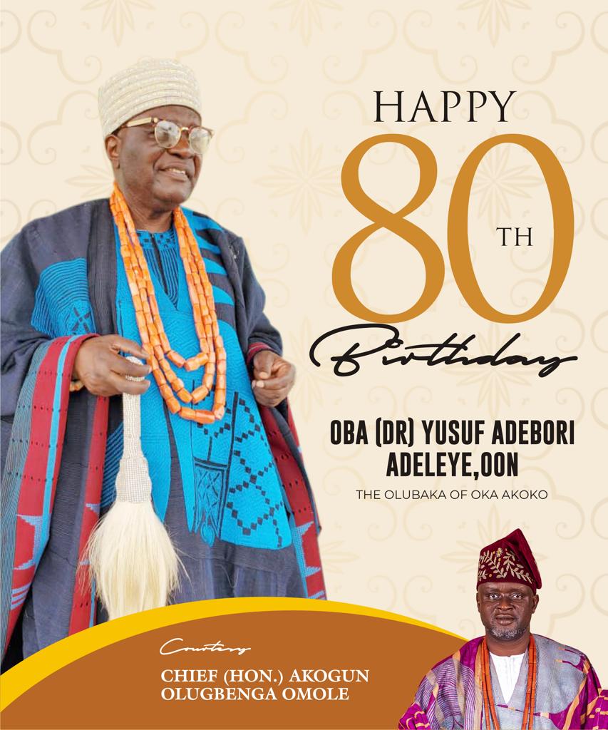 Once again, on behalf of Dr. Kayode Ajulo and the entire Oka Akoko community, we wish His Royal Majesty, Oba Yusuf Adebori Adeleye, a joyous 80th birthday celebration.