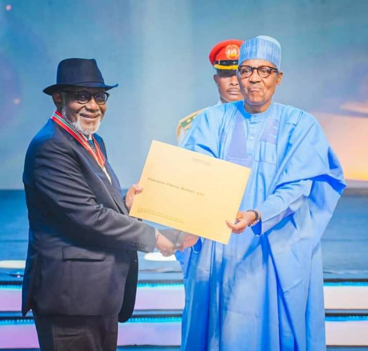 The Olubaka of Oka Akoko,Oba(Dr) Yusuf Adebori Adeleye,OON on behalf of Oka Chiefs-In-Council and the entire People of Oka felicitates with the Governor of Ondo State Arakunrin Oluwarotimi Akeredolu,SAN on the National Honour Commander of the Oder of the Niger,CON bestowed on him by President Mohammed Buhari,GCFR.