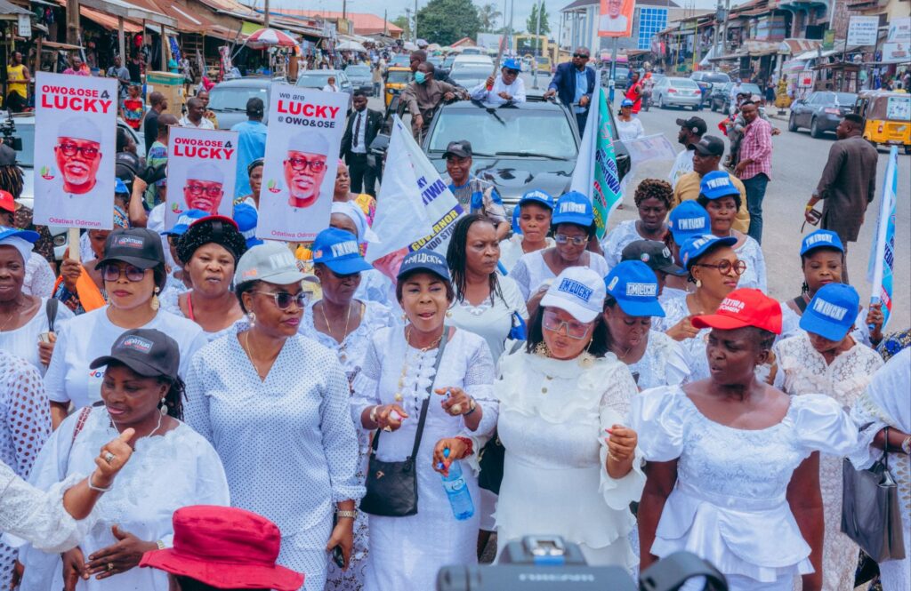 Residents across the streets were seen cheering the deputy governor and chanting ‘Odatiwa’ ‘Odirorun’ – a campaign slogan of the governor, as an array of excited motorcyclists engaged in acrobatic display while the elegantly dressed ‘Lucky Women’ danced all the way.