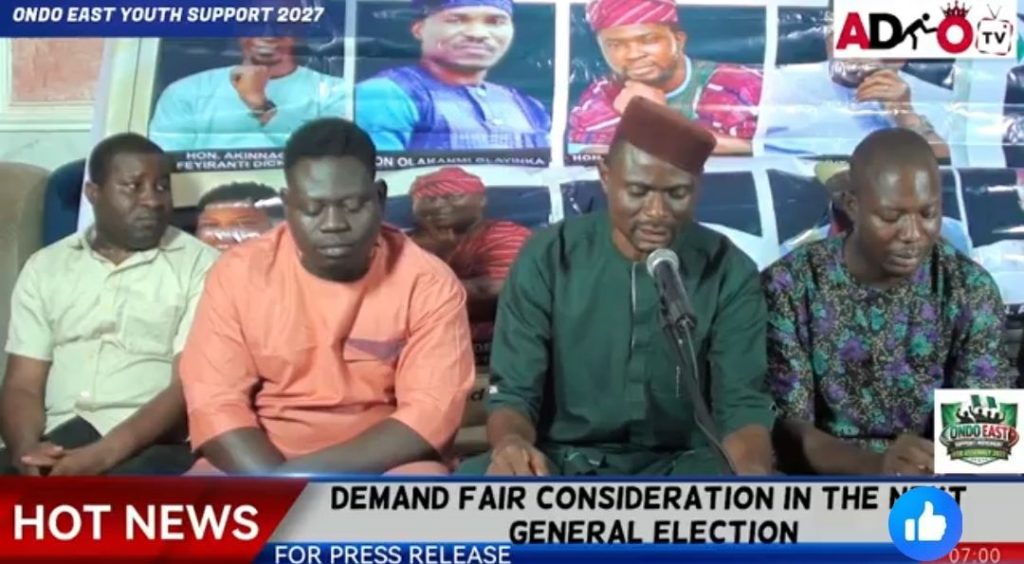 A newly formed youth movement in Ondo East Local Government of Ondo State has issued a public call to action, demanding that credible young indigenes from the area be given the opportunity to contest for the State House of Assembly and the Federal House of Representatives in the 2027 general elections.