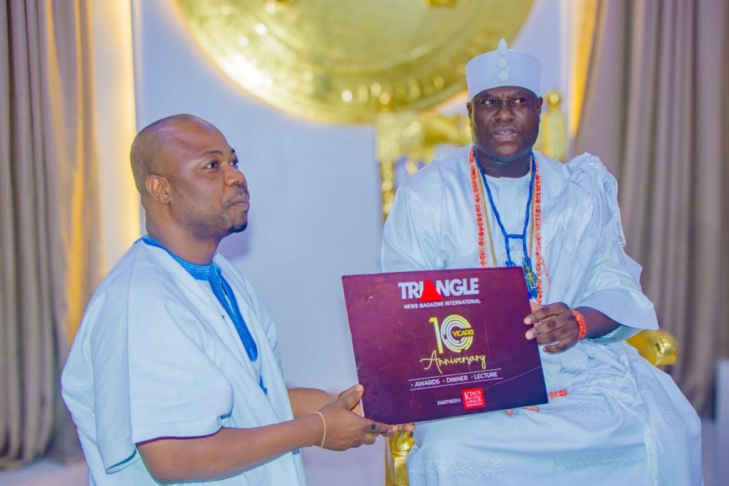 The Chief Executive Officer of Triangle International Magazine, Otunba Femi Salako, has formally presented an invitation letter for the Triangle 2025 Face of Africa Leadership Award for Excellence to the Ooni of Ife, Ooni Adeyeye Enitan Ogunwusi, ahead of the ceremony scheduled for Thursday April 2 2026 at the Great Hall Strand Campus of King’s College London, United Kingdom.