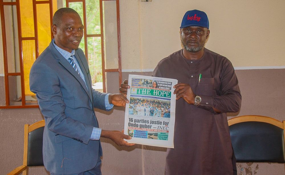 The first port of call was the Owena Press the Publisher of Hope Newspaper the Chairman and Managing Director Sir Ademola Adetula, represented by the Editor, Pastor Akin Adubuola noted that the company has had to manage crucial challenges to stay afloat.